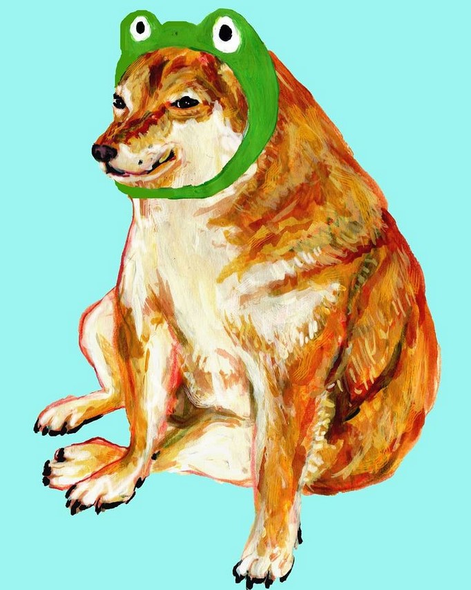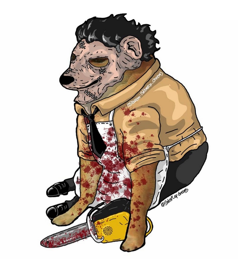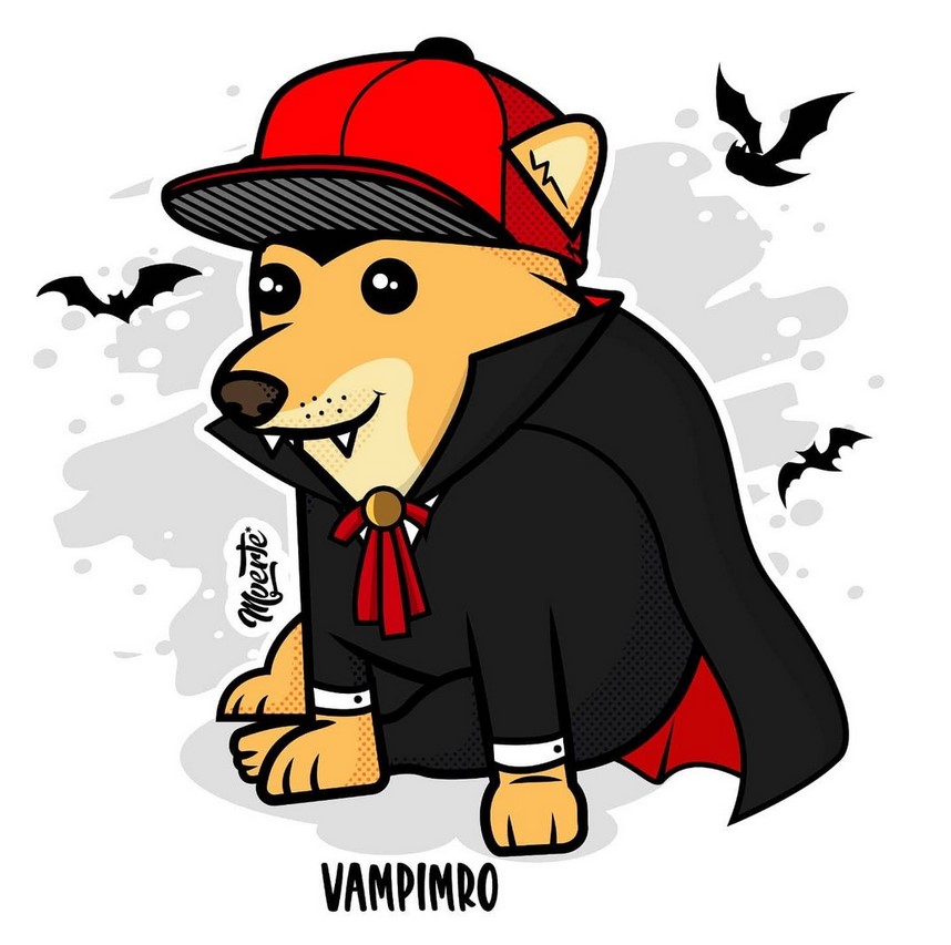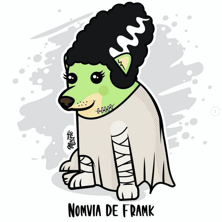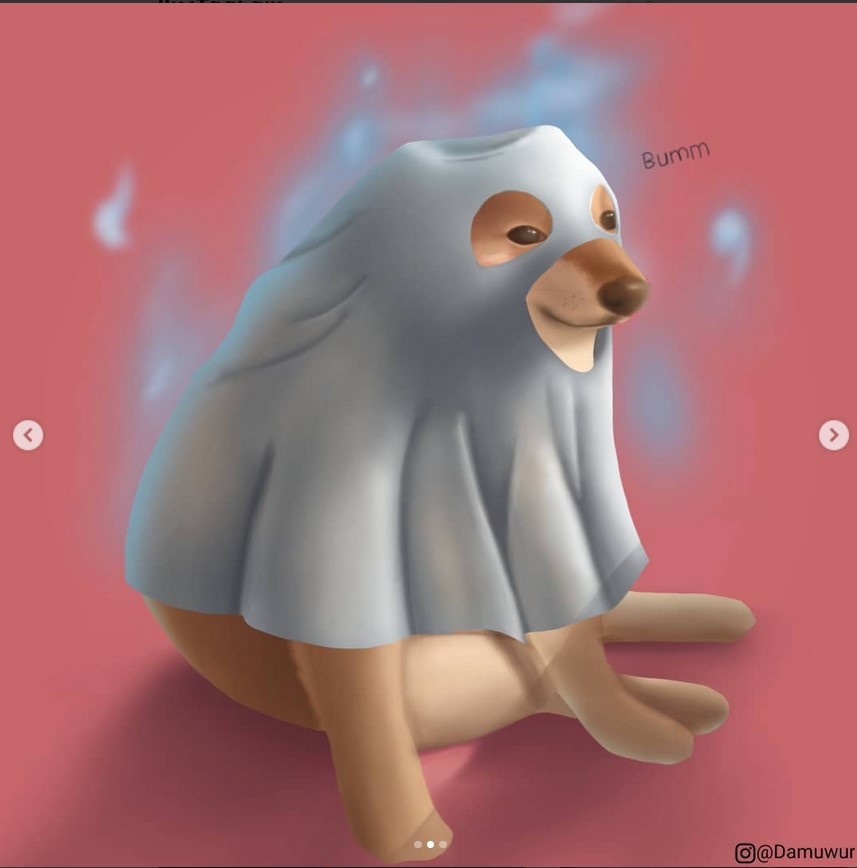 Prácticamente, es el mismo Cheems pero con ropita diferente una y otra vez. Y eso es lo impresionante, la manera en que Mverte hace ver tan finamente marcada la referencia cultural y cómo es que se aventura a referencias que sólo pueden encontrarse en su trabajo; ¿un Cheems IT? Eso era teóricamente imposible hasta que vimos su publicación. Como apunte especial, noten el uso del color, este ilustrador, dibujante, tatuador, etc., sabe perfectamente dónde empieza y dónde acaba cada tono en sus toons.