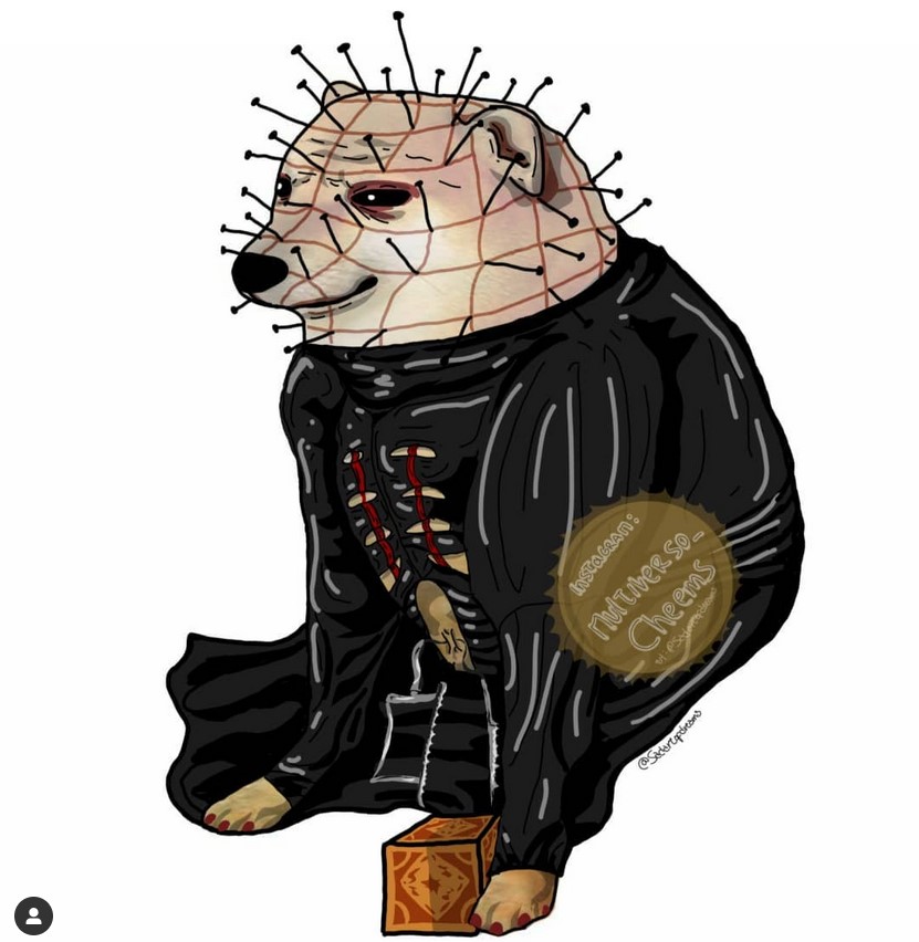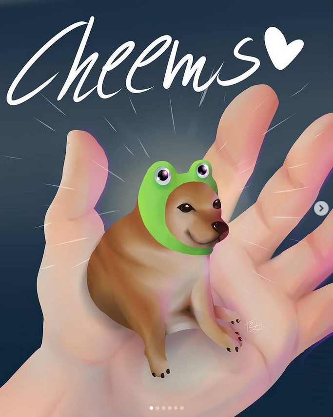 Su obra Diambolic ha llegado muy lejos, muy, pero muy lejos. Las cuentas que han tomado dicha pieza y la han subido (con o sin otorgarle el crédito que merece) se expanden en un margen que va de los 1000 likes a los 15 000 likes. De este talentoso dibujante no son pocos los elementos a rescatar, pero los más notorios sin duda están en su realismo y en su versatilidad. Los de Multiverso Cheems (Sadart of dreams) son Cheems atrevidos y oscuros de referencia a las fronteras entre la cultura de masas y el conocimiento literario y cinematográfico. Su Cheems Pinmhead y Cheems Mimchael myers, son dos de muchos ejemplos.