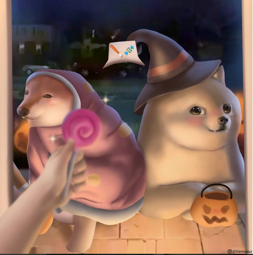 Hacia mediados de octubre 2021 la temporada de día de muertos y Halloween no estaba marchando como se esperaba y simplemente parecía que Cheems no conectaba con estas fechas de consumo cultural y comercial. Incluso, podríamos llegar hablar de una caída en el mame Cheems. Fue entonces que aparecieron tres titanes de la gráfica y traían con queso hasta las que no llevan queso.